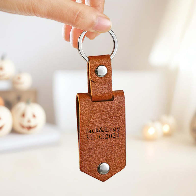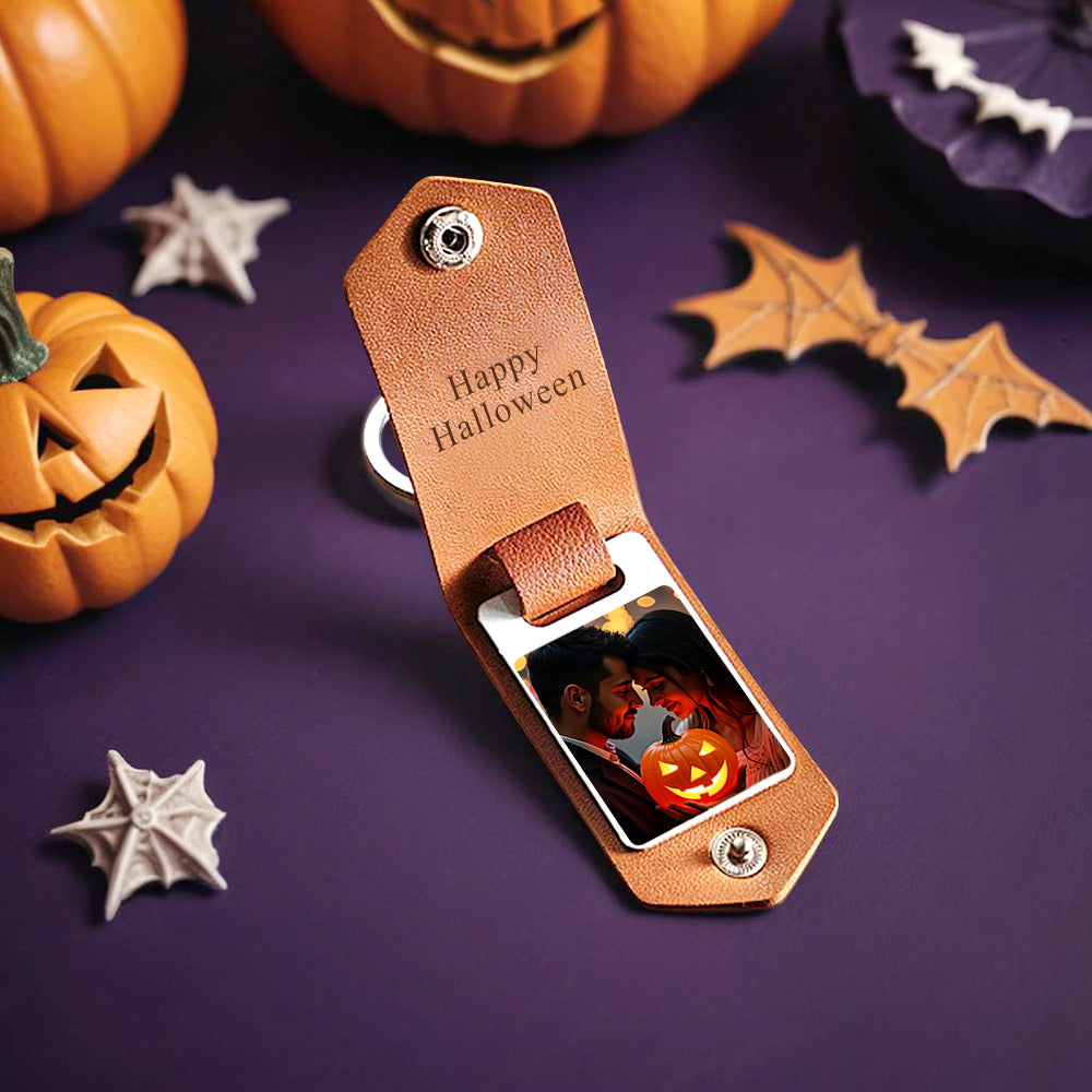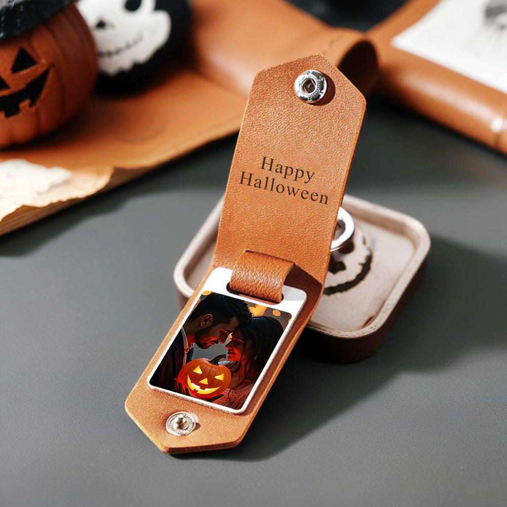 Halloween Gifts Custom Photo Leather Keychain Personalized Leather Keychain for Couple