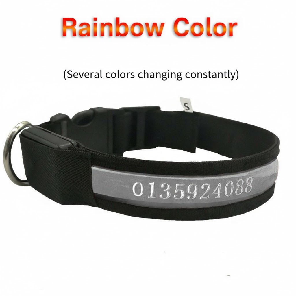 LED Dog Collar with Personalized ID Tag Glowing Light-Up Night Safety Adjustable Pet Collar for Small & Large Dogs Custom Name