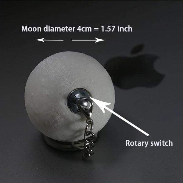 • EASY TO USE: White light; Multicolor light (White, Red, and Blue lighting color. Just turn the keychain knob clockwise to turn the moon lamp on and counter-clockwise to turn it off.)