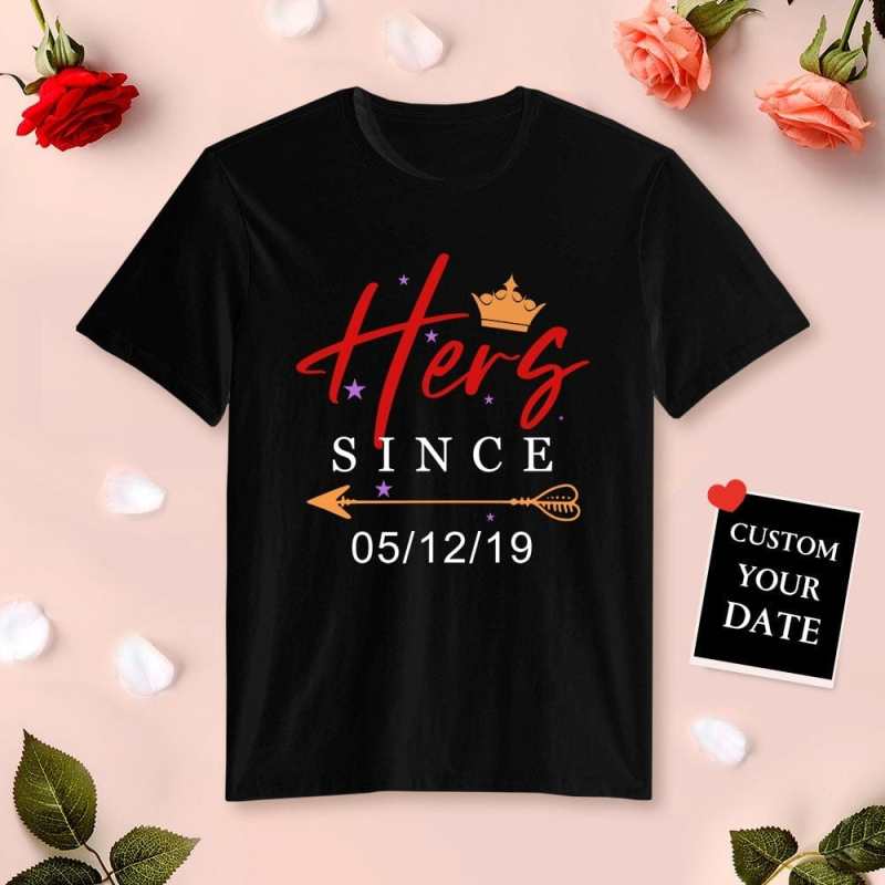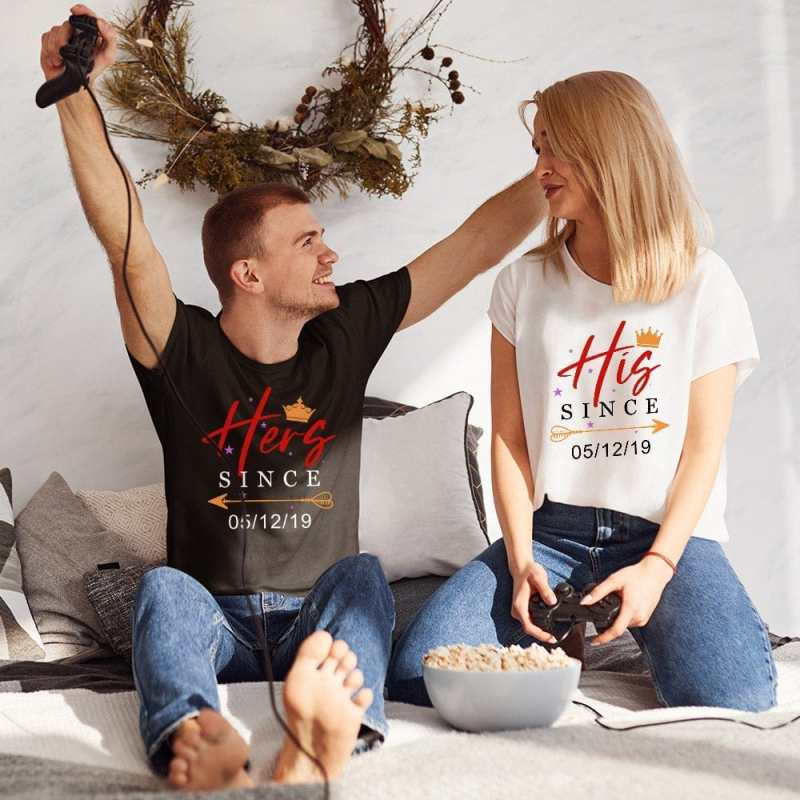 • You can enter the date to customize this couple's t-shirt. A cool and stylish fashion essential, that you will want to wear every day. Our design team works hard to get a perfect production. A gift for you and your valentine!