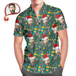 Men's Custom Face Wear Santa Hat Christmas Hawaiian Aloha Shirts Christmas Gift