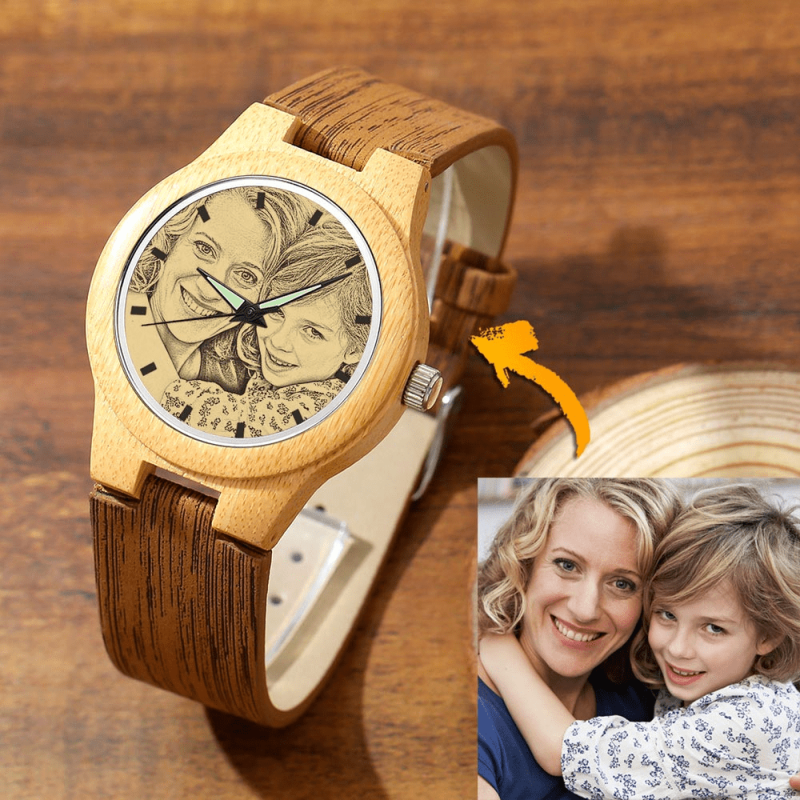 Memorial Gifts Bamboo Photo Watch Gift For Mom