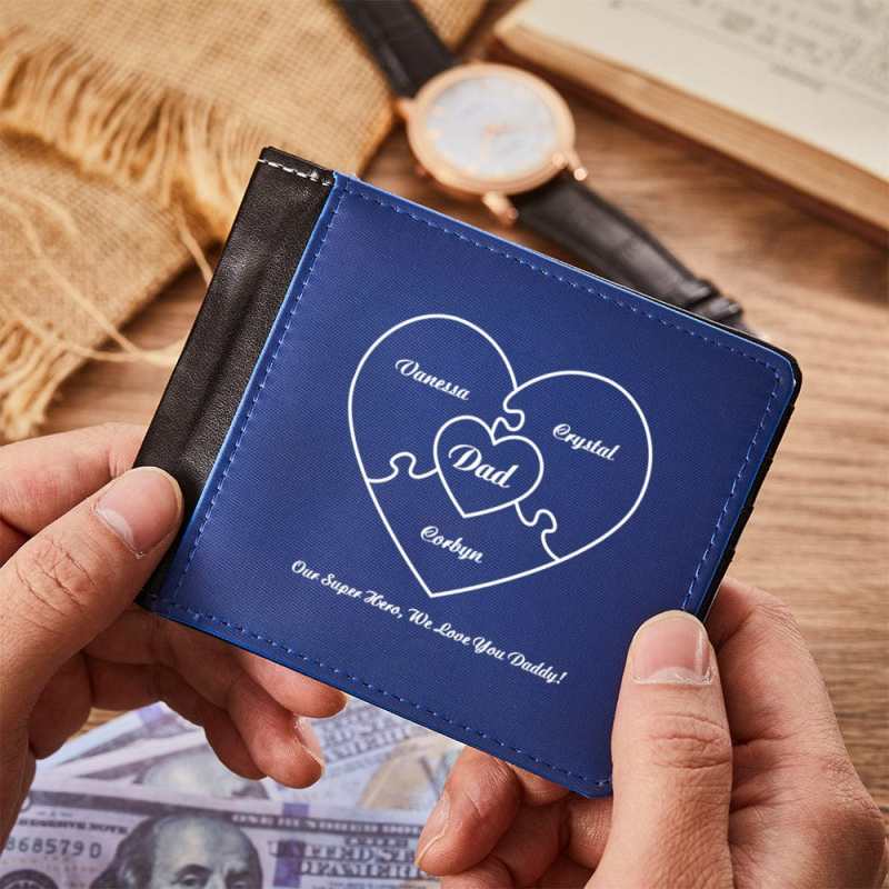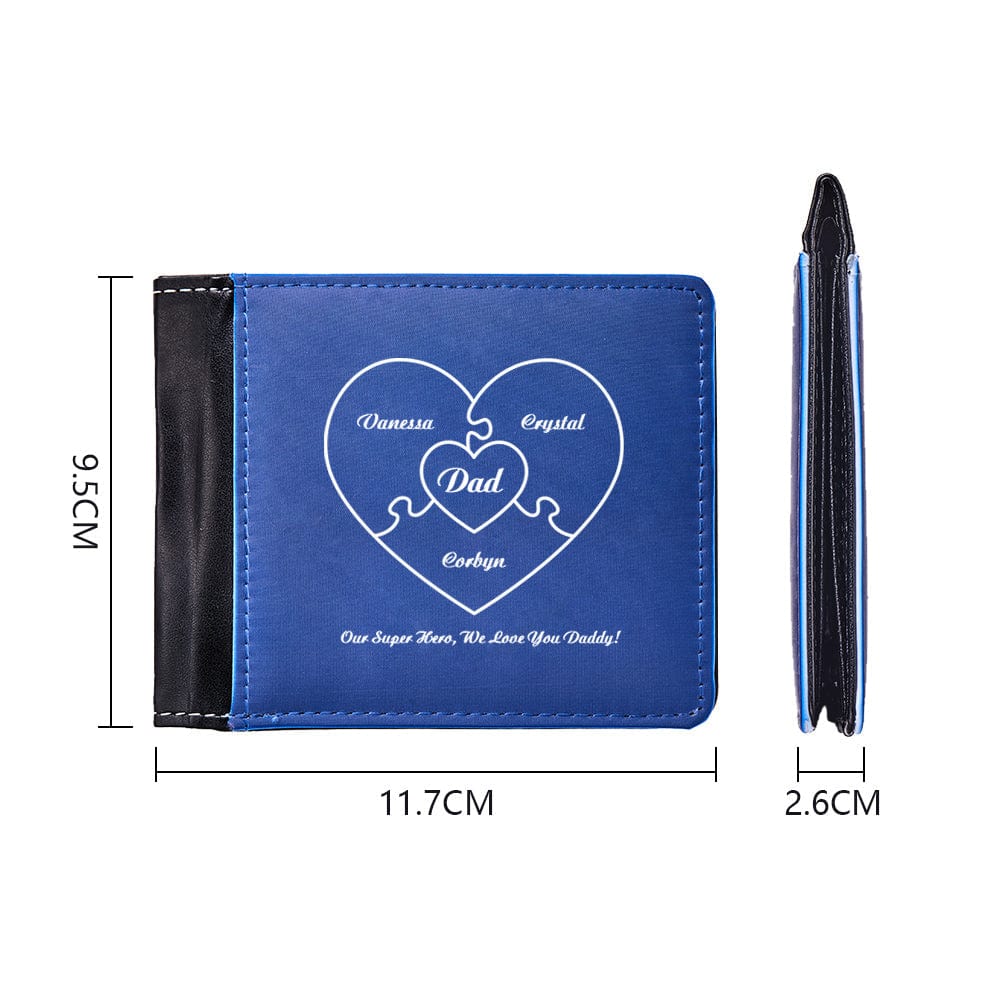 Men's Wallet With Name Engraved Personalized Gifts for Dad with 3 Kids' Names