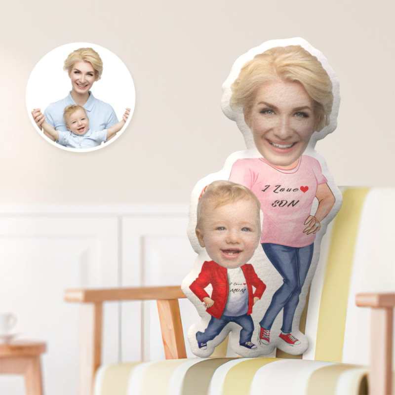 Custom Pillows Face Pillow Minime Pillow Mother's Day Gifts - Mom with Son