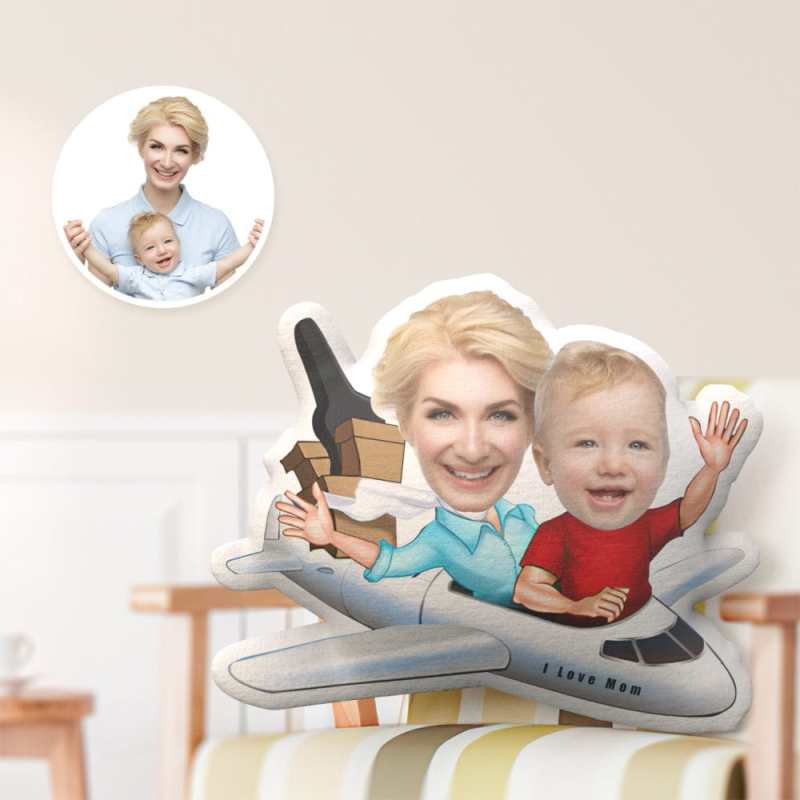 Custom Pillows Face Pillows Minime Pillow Mother's Day Gifts - Mommy with Son in the Airplane