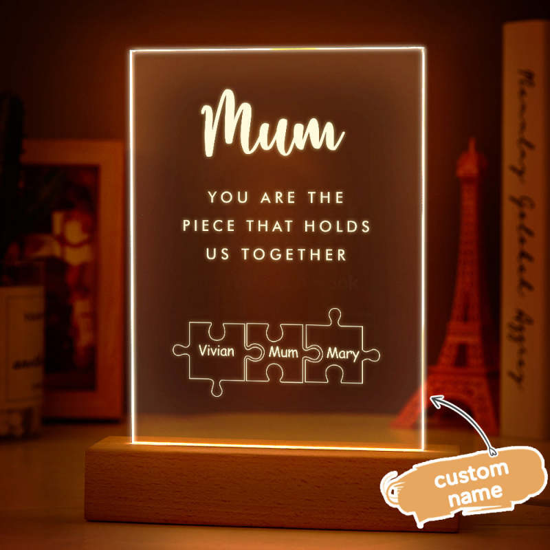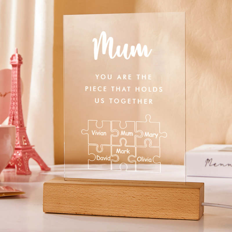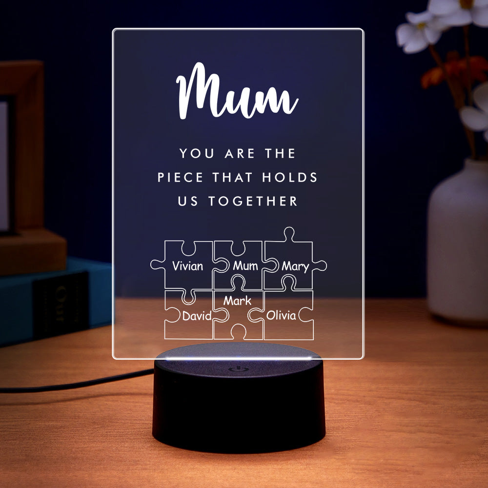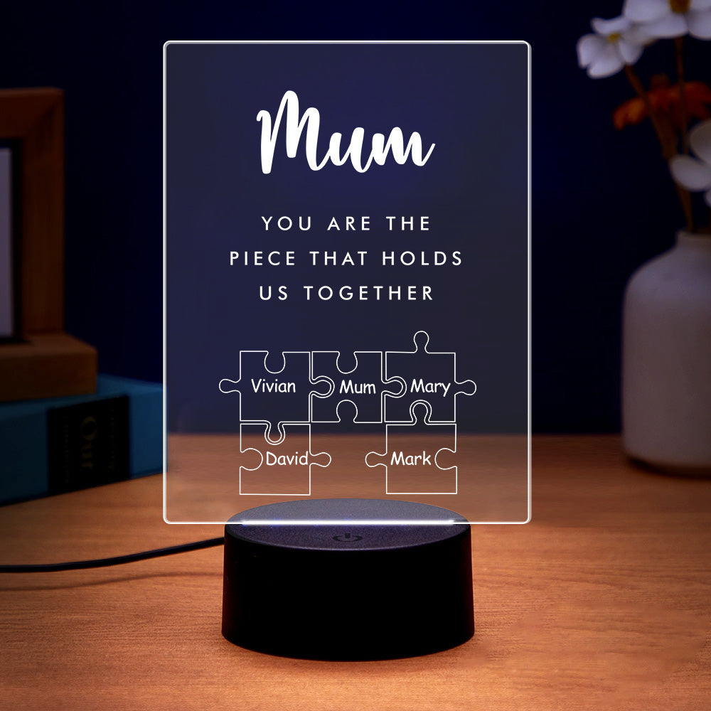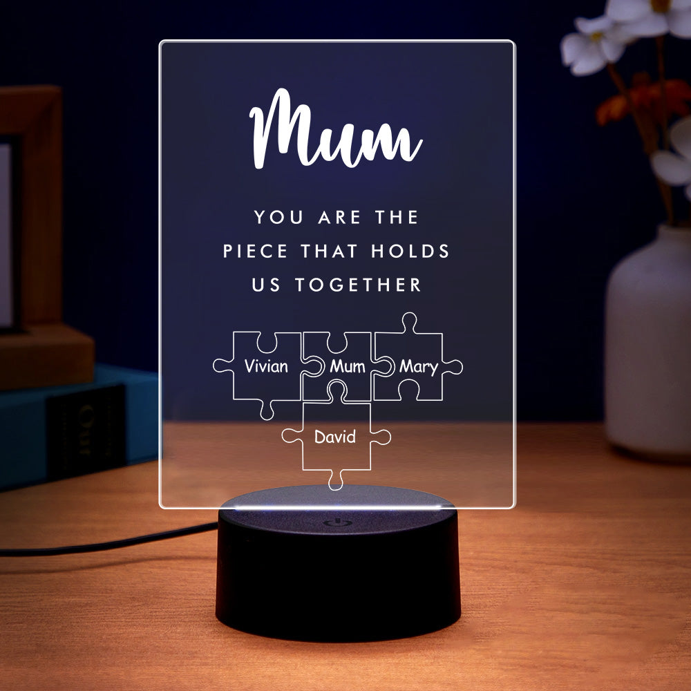 Mother's Day Gift Personalized Mum You Are the Piece that Holds Us Together Acrylic Night Light for Mum