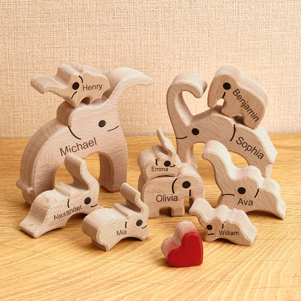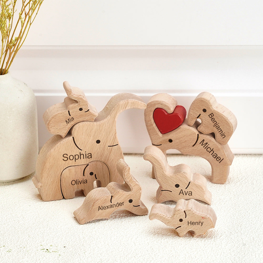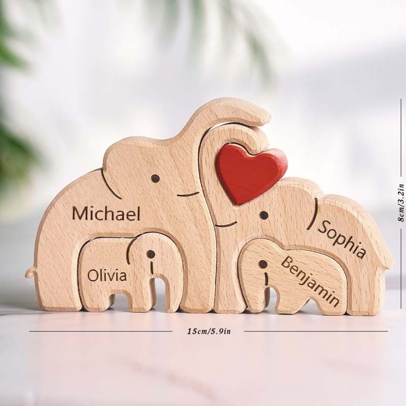 Wooden Family Elephant Puzzle Custom Names Home Decor House Warming Gifts