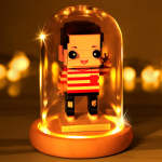 (No Brick Figures) Acrylic Anti-dust Cover Wooden Base with Light 8*12.5cm