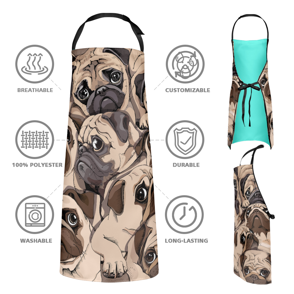 Personalised Photo Apron Portrait Of Many Cute Pugs Gifts for Pet Lovers