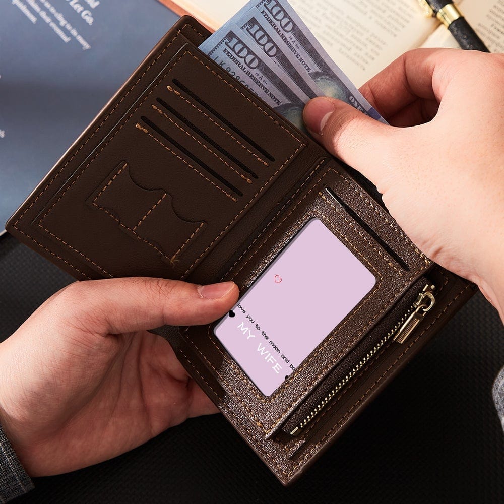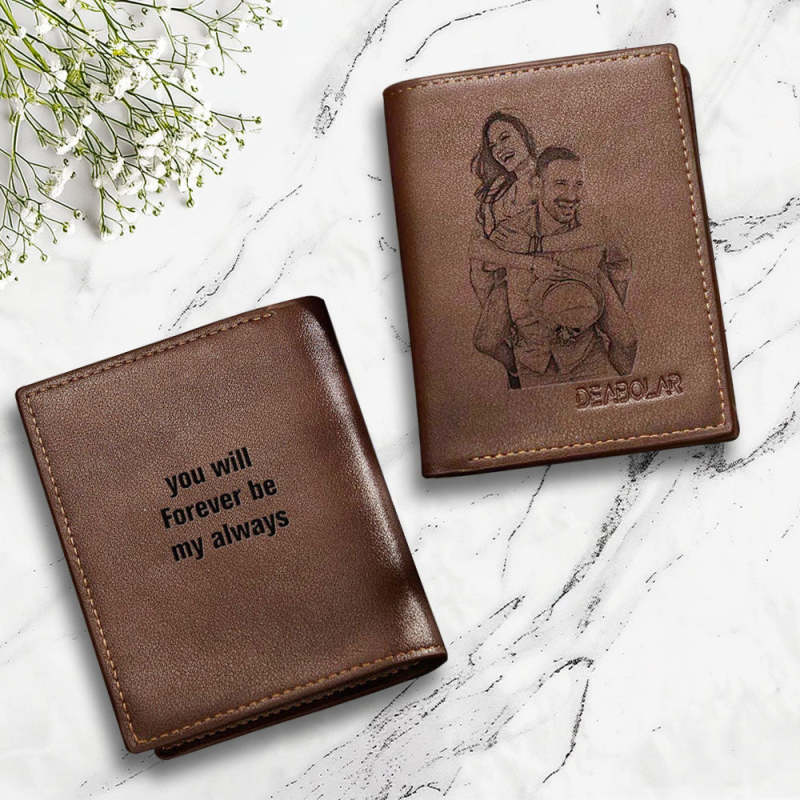 Photo Engraved Wallet Gift for Men.Our Photo Wallet will capture a moment that is gone forever. The photo will never fall off! This photo wallet is designed to provide you with a quick and easy way to create a unique and useful souvenir. Advanced fabric and the classic design makes the wallet even more stylish. The design is very traditional, the size is perfect, the details are very gorgeous, really have the appearance of high-end wallet. Once you place an order, you'll be able to preview how it will appear on the wallet. Please do remember high resolution picture will come out better than the preview. This wallet is a great Valentine's Day Gift for Husband, Boyfriend.