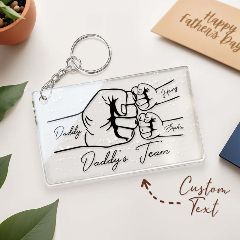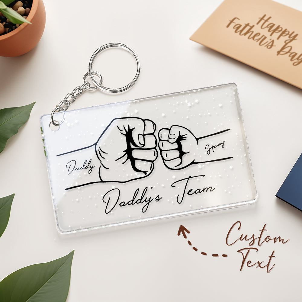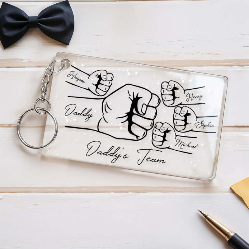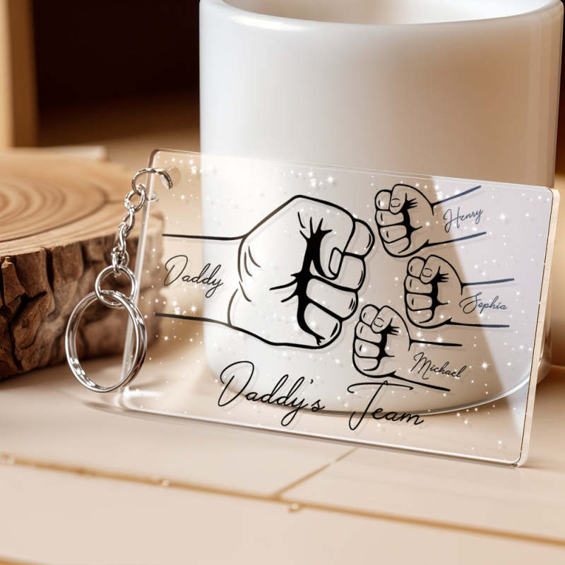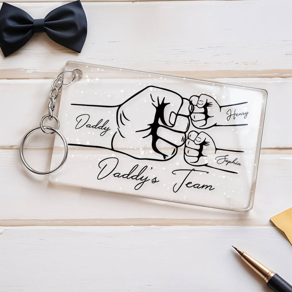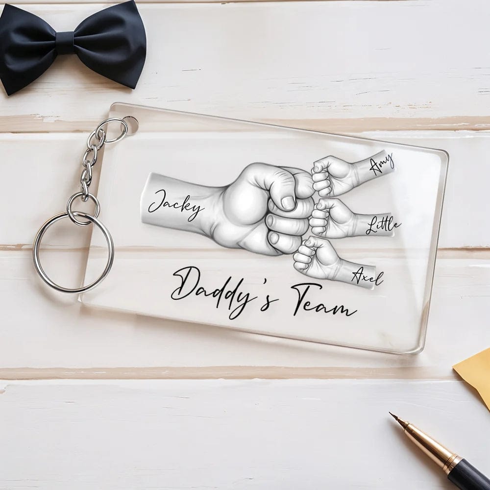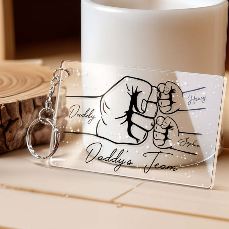 The Daddy's Team Fist Bump Personalized Acrylic Keychain, Father's Day Gift For Dad, For Grandpa, For Husband symbolizes the special bond between father and child.