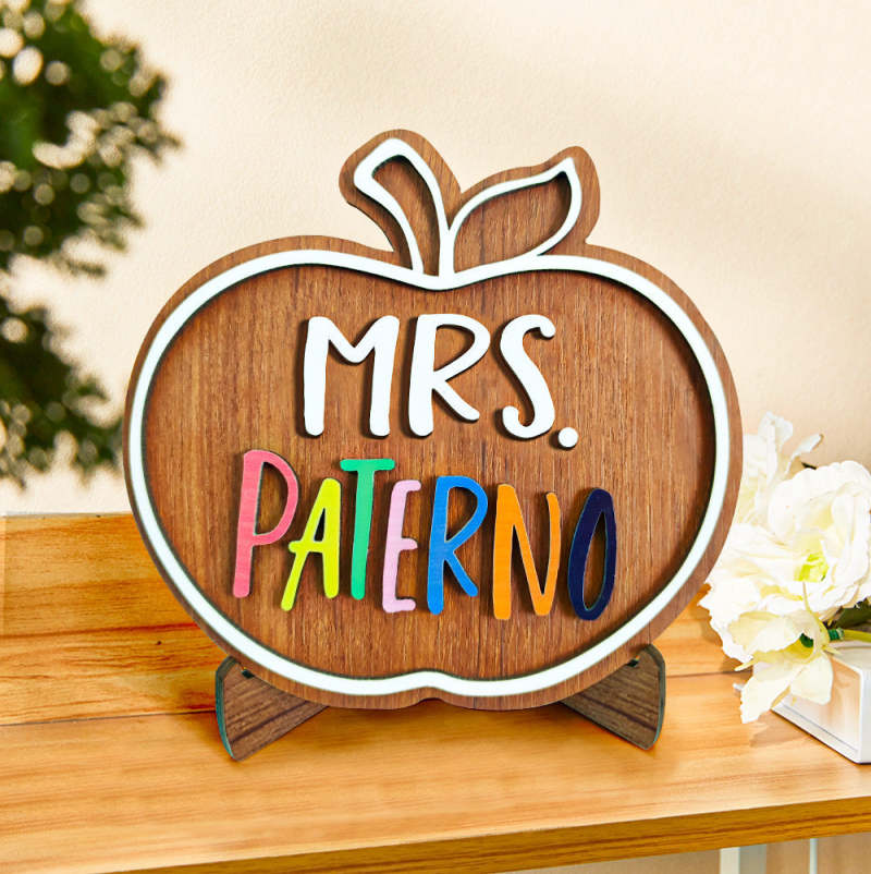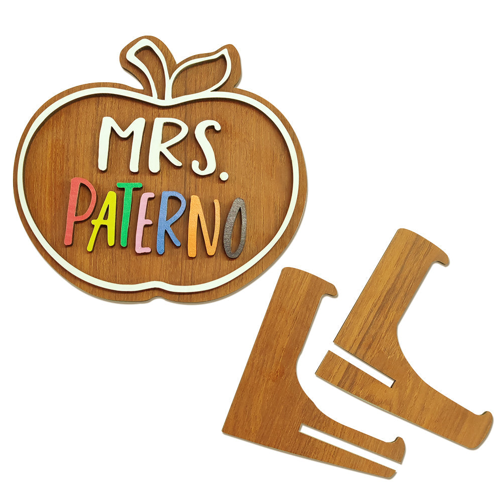 Wooden Name Plaque Custom Name Sign Apple Wooden Sign Gift for Teacher