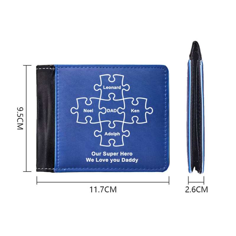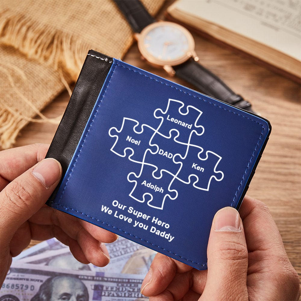 Personalized Bifold PU Wallet Gifts for Father with 4 Kids' Names Father's Day Gifts
