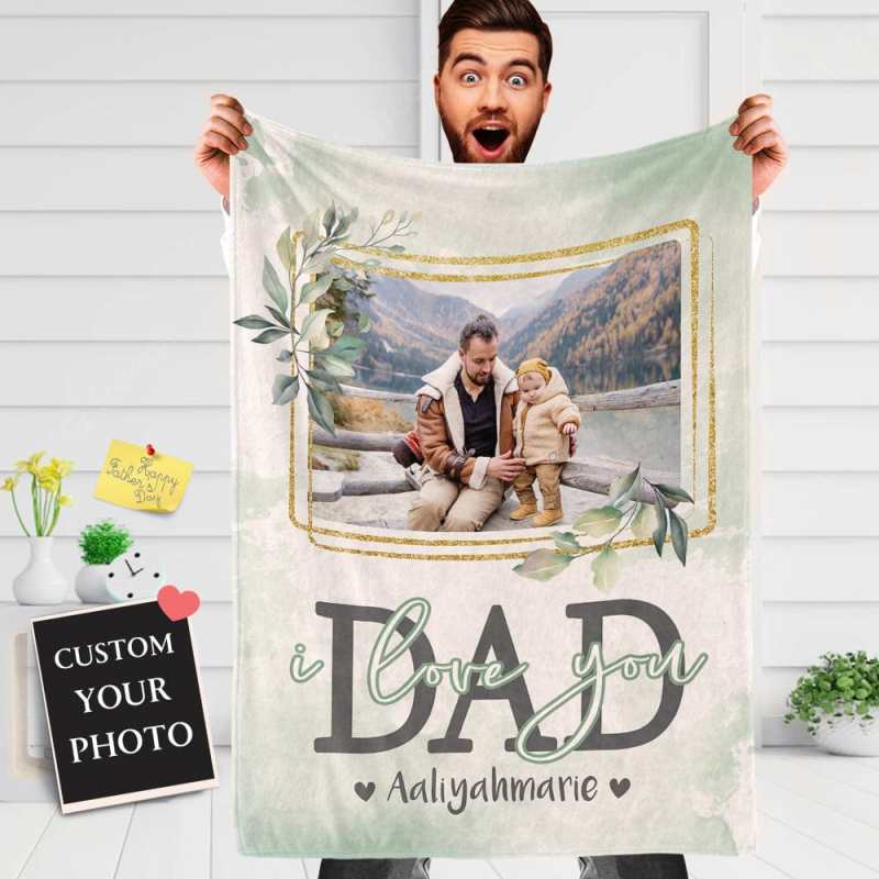 Personalized Blankets for Dad Custom Blanket with Photo I Love You Dad