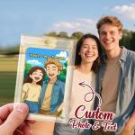 Bring your favorite photo to life in a playful cartoon style. This personalized couple card is sealed like a collector's item and includes your photo and a heartfelt message. Ideal for anniversaries, Valentine's Day, or surprise gifts.