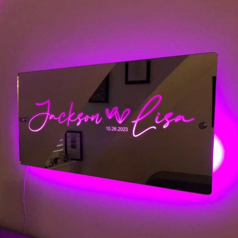 Personalized Couple Name Mirror Light Marquee Christmas Gift