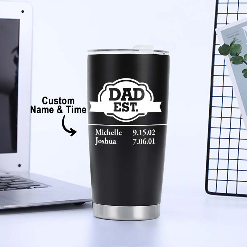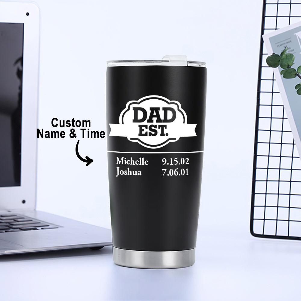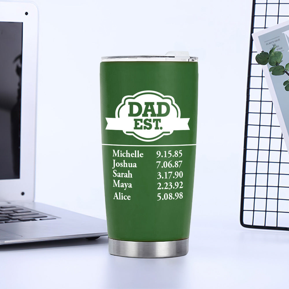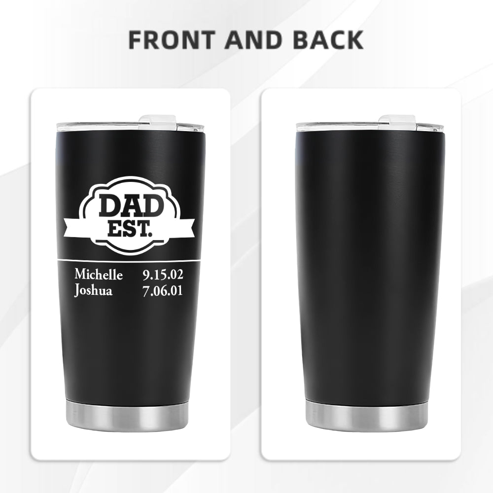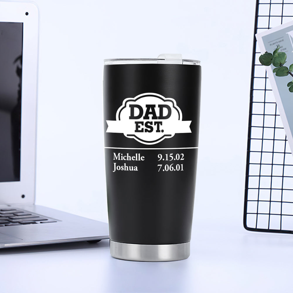 Personalized Dad Travel Mug with Kids' Names 20oz Stainless Steel Insulated Travel Mug Father's Day Gift for Dad
