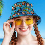 Personalized Face Bucket Hat Double-Side-Wear Reversible Hawaiian Style Outdoors Sun Cap