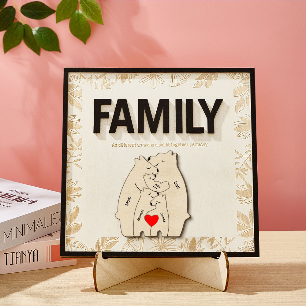 Personalized Family Bear Wooden Plaque Custom Family Member Name Sign Gift for Mom