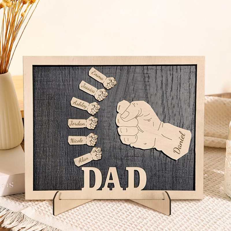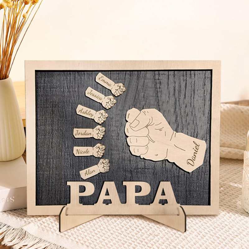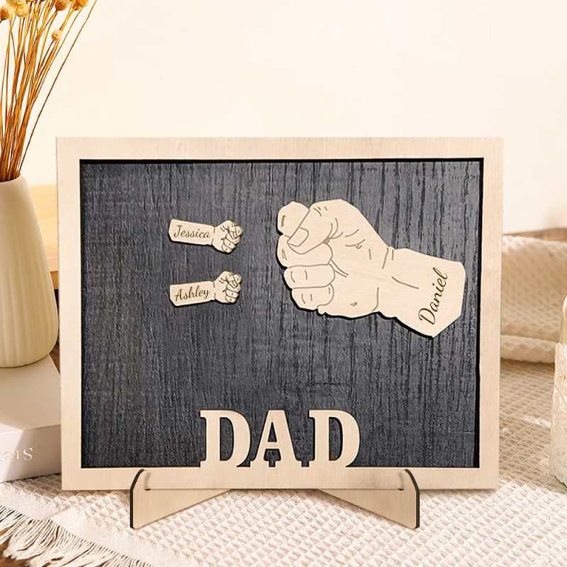 Personalized Fists Wooden Plaques With Names Decor Gift For Father's Day