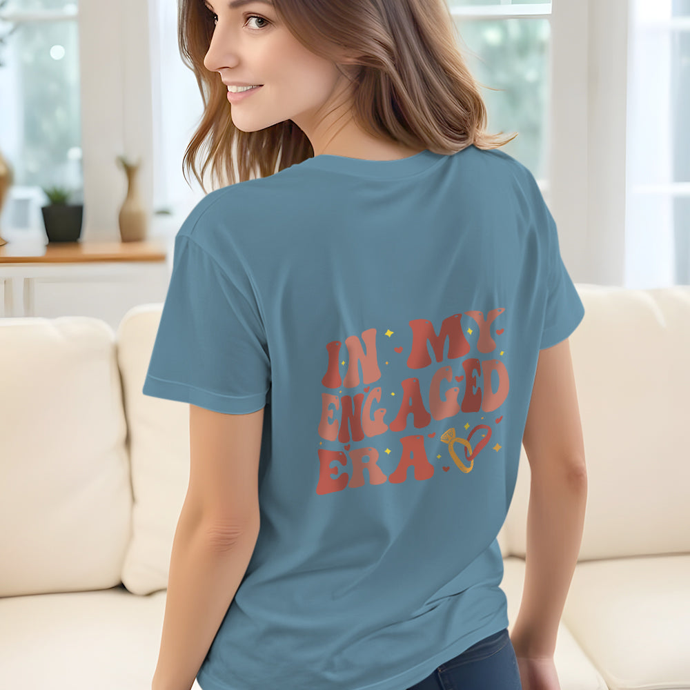 Celebrate your engagement with our Personalized Bachelorette T-Shirt! This shirt is perfect for any bride-to-be, with its customizable design featuring the words "In My Engaged Era" and her name. A fun and unique gift for a bridal shower or engagement party.