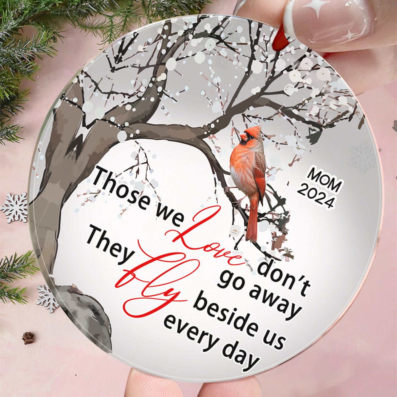 Personalized Memorial Ornament Cardinals Blossom Tree Christmas Ornament Gifts for Family