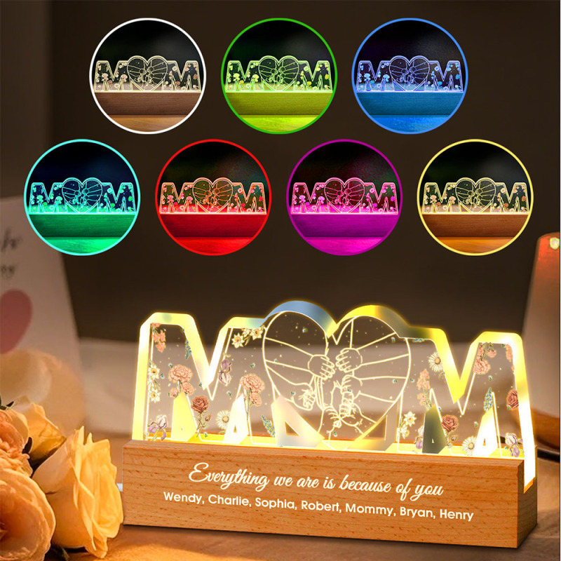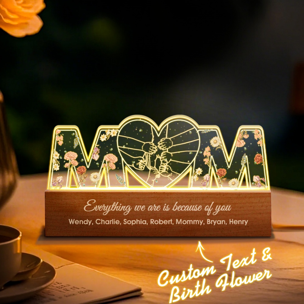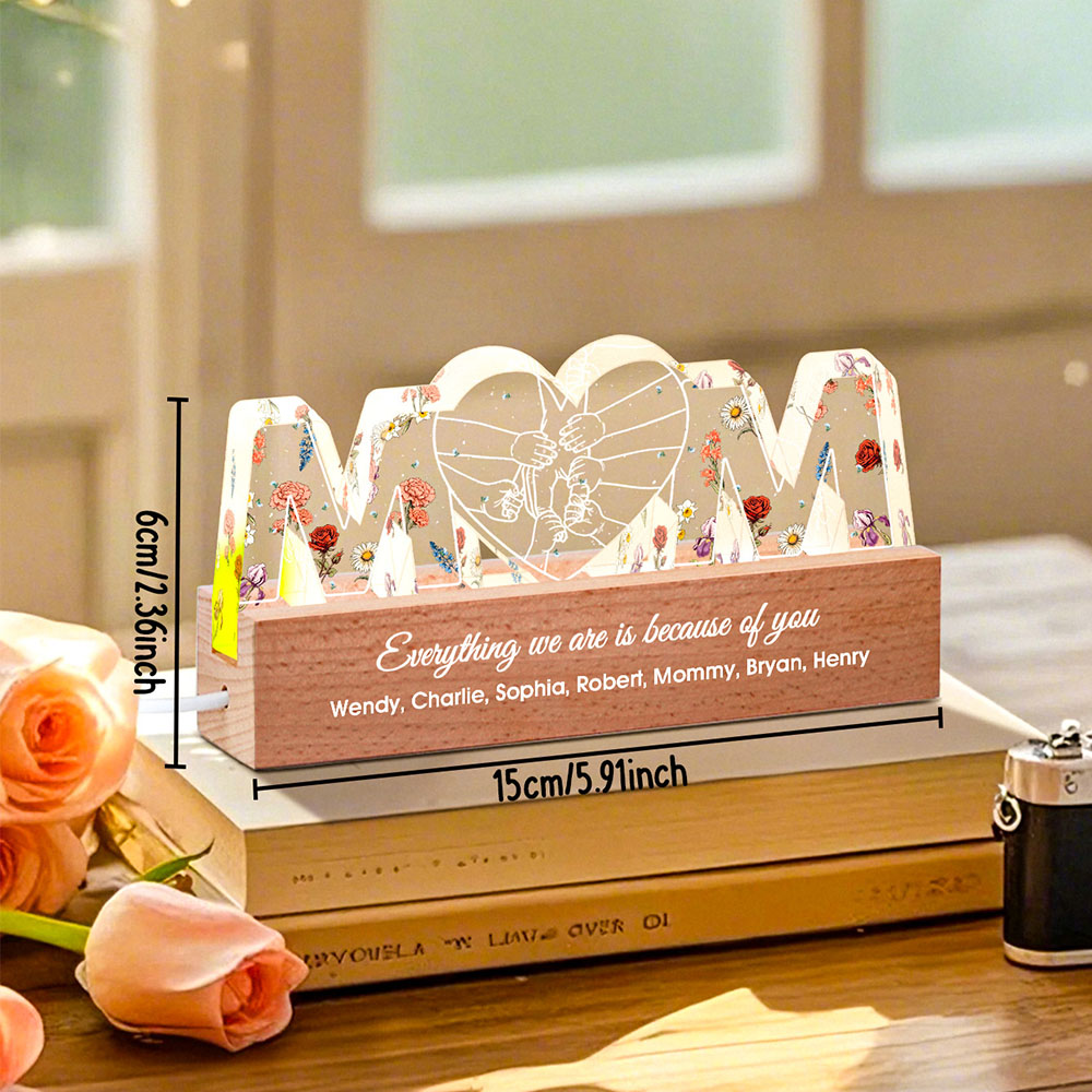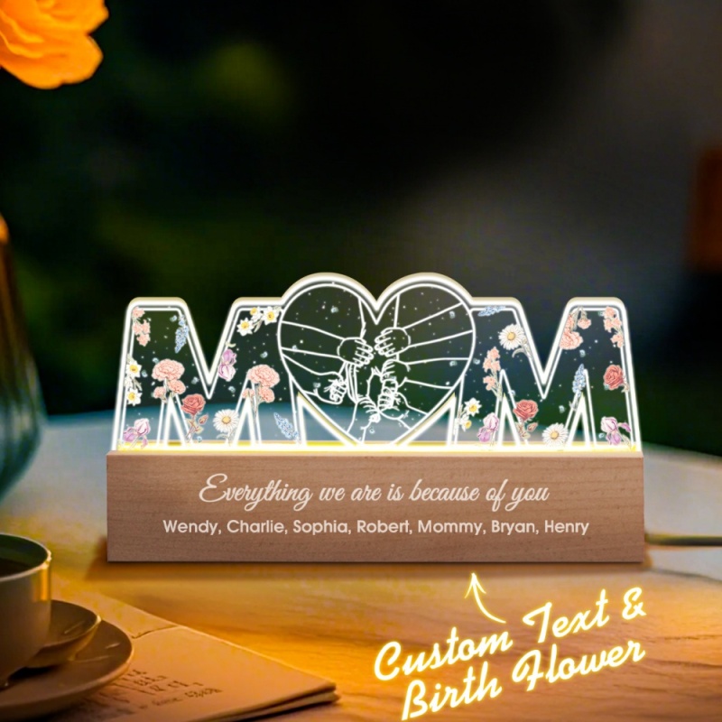 Personalized Mom LED Night Light with Birth Flower Night Light Mother's Day Gift for Mom