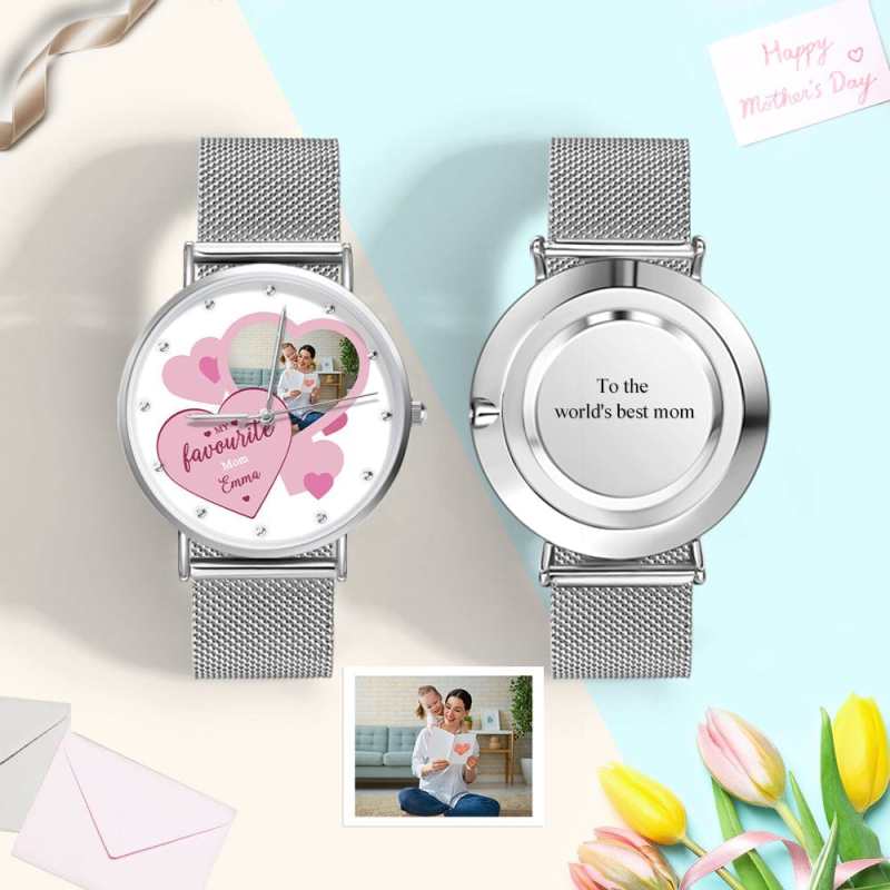 - This personalized watch will be a perfect Mother's Day gift. With an outer casing made from premium alloy, this classic timepiece is precision powered by Japanese movement. All you need to do is pick a memory for the dial and make a gift that goes down in time.