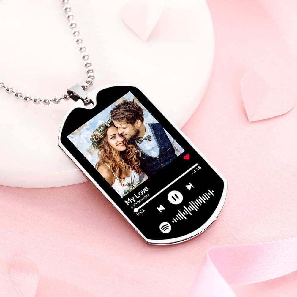 Personalized Music Spotify Code Stainless Steel Couple Photo Necklace