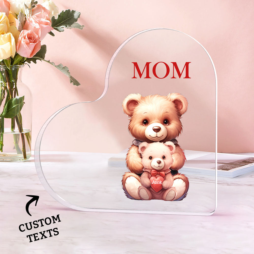 Personalized Name Heart Shaped Acrylic Plaque Keepsake Mother's Day Gifts Bear Family Together