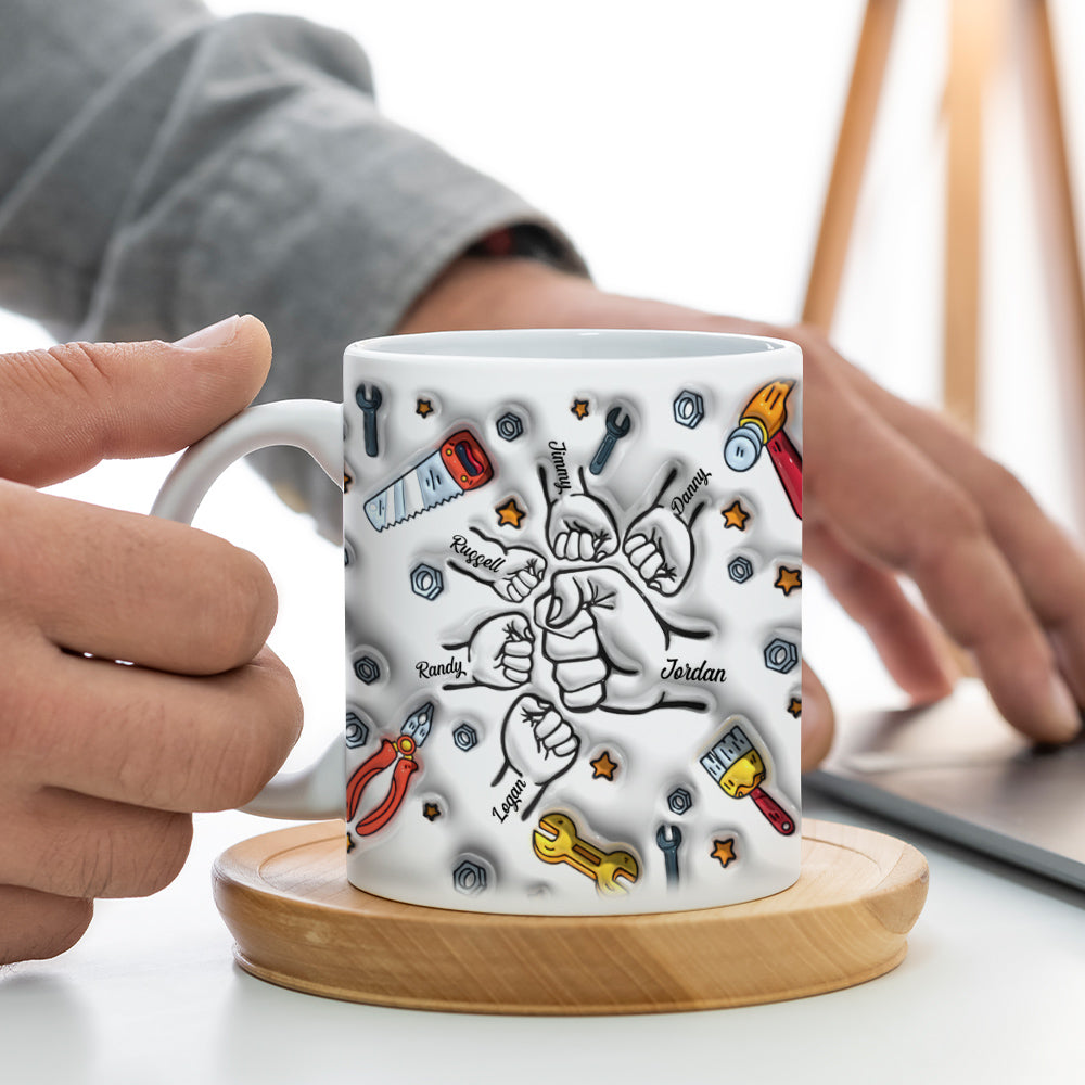 Personalized Names Custom 3D Inflated Effect Printed Mug 1-6 Kids Father's Day Gifts