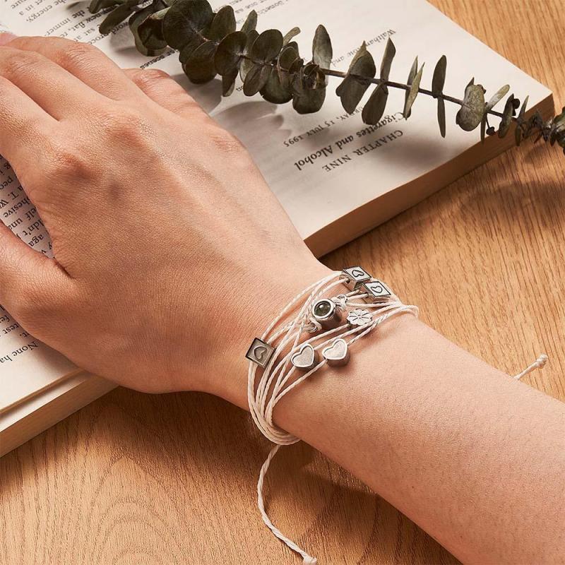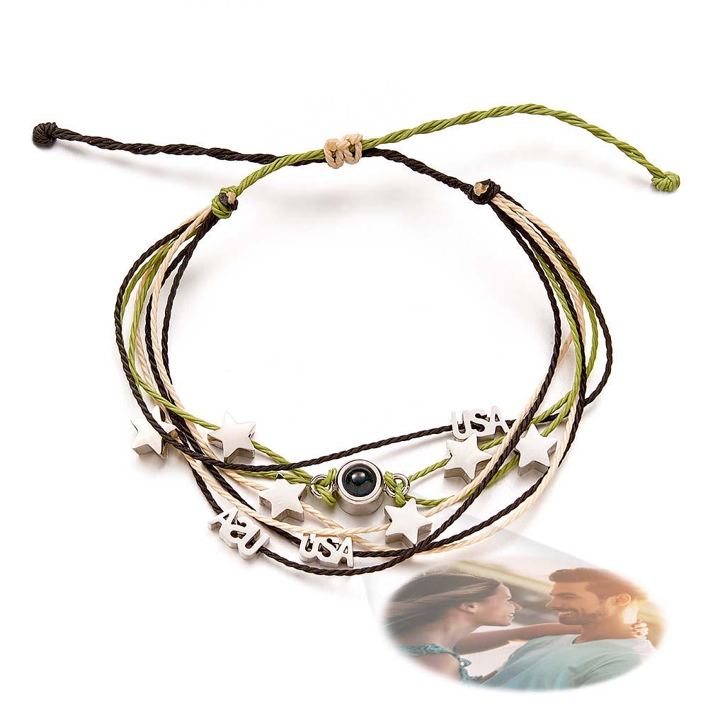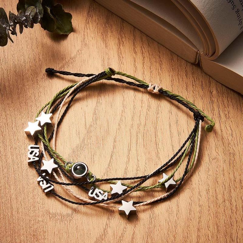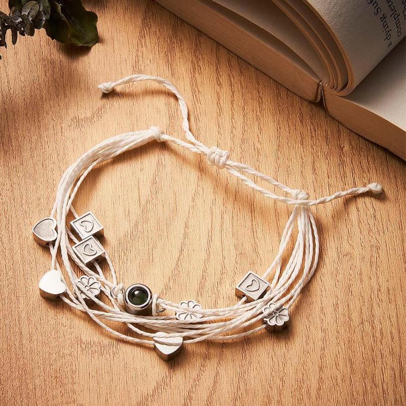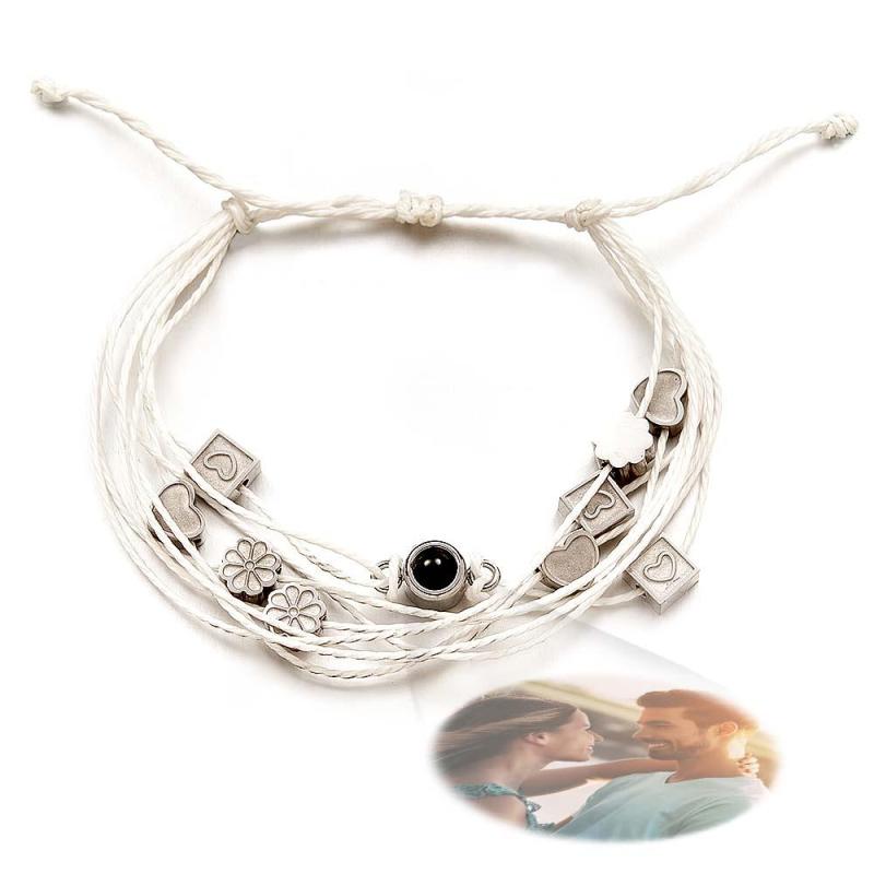 Personalized Photo Bracelet With Love Charms Picture Projector Minimalist Memorial Anniversary Gift for Her Him