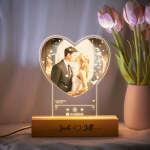 Personalized Photo Heart Shaped Acrylic Lamp Custom Night Light with Engraved Wood Base Gift for Couple