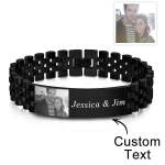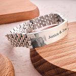 Personalized Photo Wide Bracelet With Text Engraved Vintage Bracelet Gifts For Him
