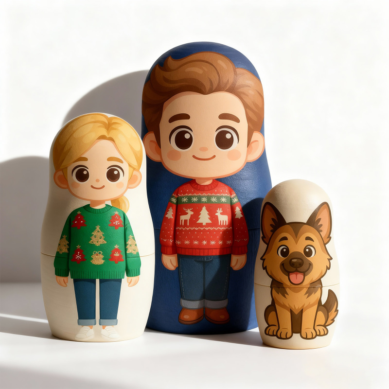 Personalized Portrait Nesting Doll Custom Photo Family Portrait Cartoon Style Gift Christmas Gift for Couple