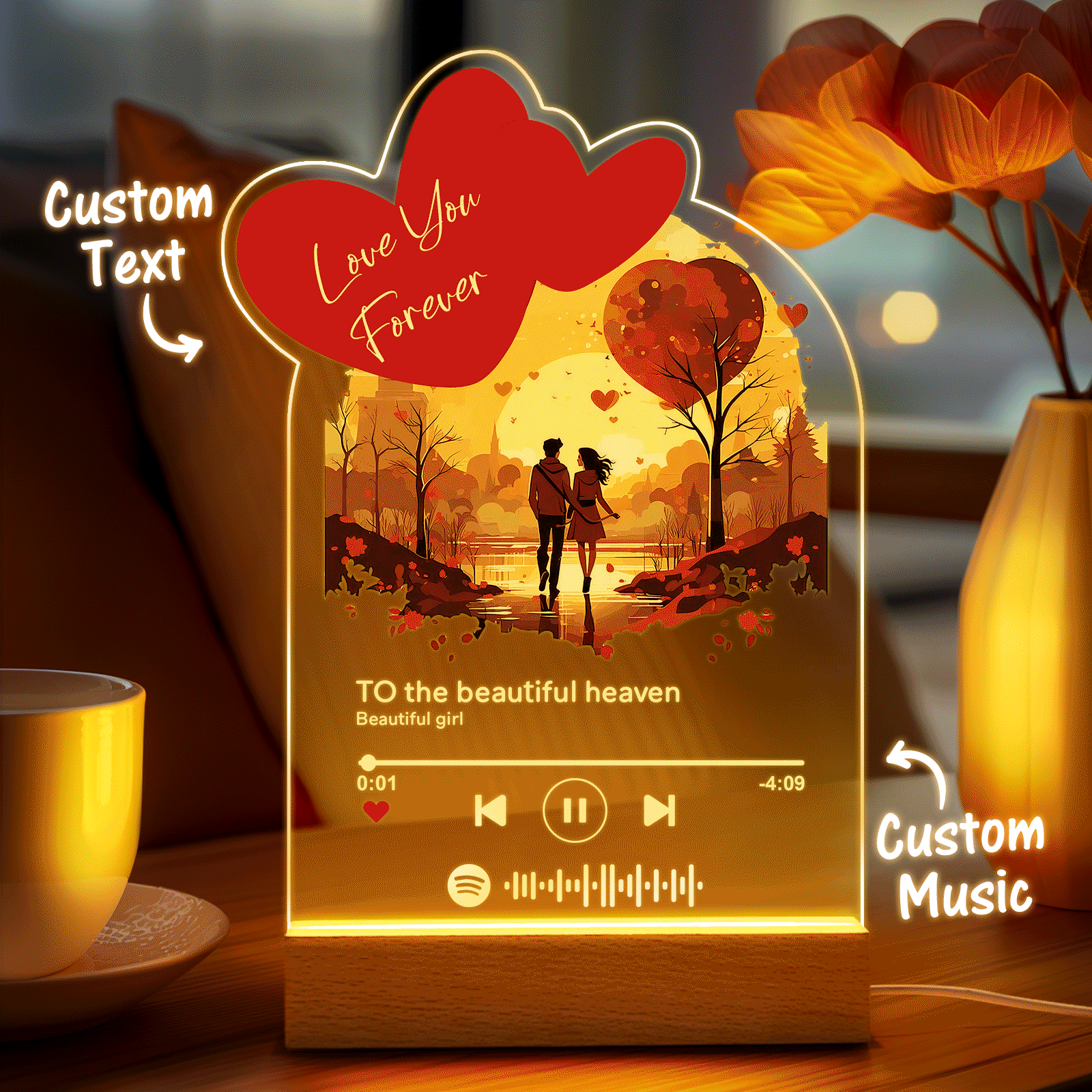 Personalized Romantic Love Acrylic Night Light Gift for Couple Home Decor