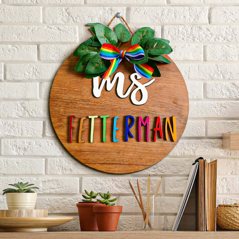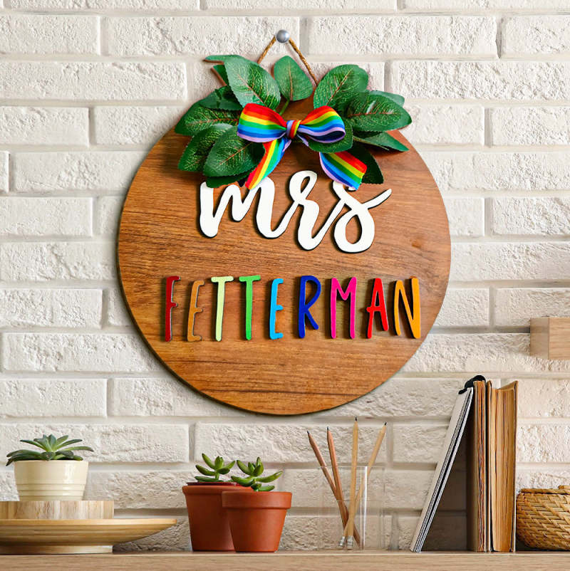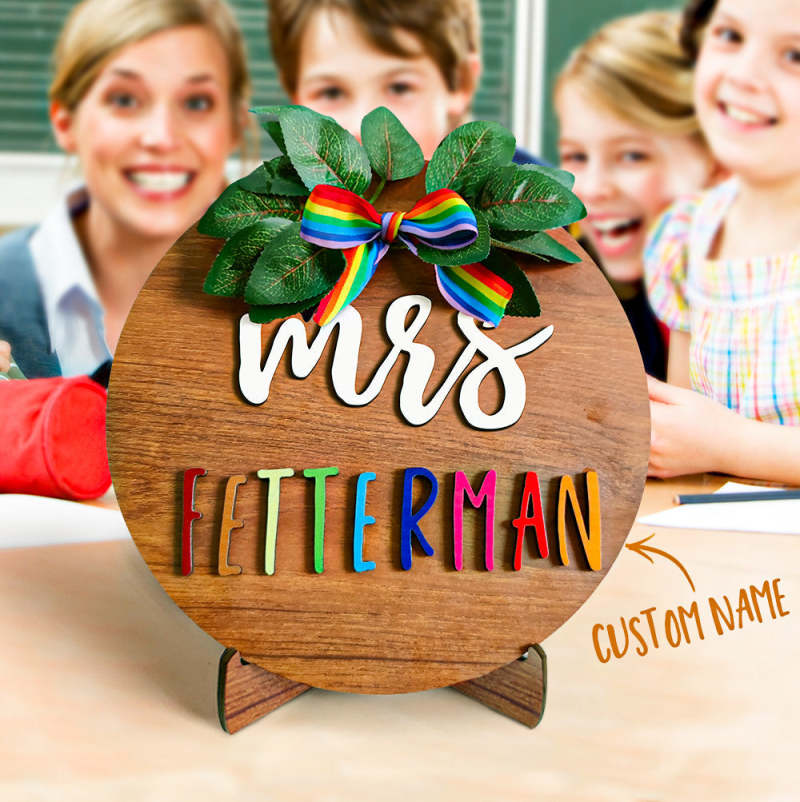 Personalized Round Wooden Sign Custom Name Wooden Plaque Gift for Teacher