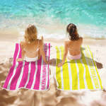 You can customize your name on the beach towel and choose a color to match it with classic stripes. Family members or friends can wrap themselves in unique styles and make their classic summertime look.