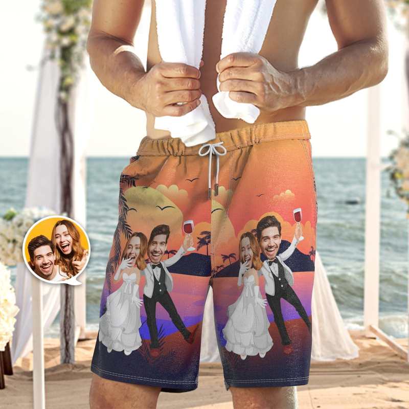 Personalized Swim Cool Swimming Trunks With Face Beach Shorts Custom Wedding Gifts