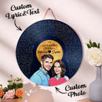 This personalized round wood sign is the perfect gift for music lovers. Featuring a vinyl record design and customizable song lyrics and portraits, it adds a unique touch to any space. Handcrafted with high-quality materials, it's a timeless and heartfelt gift for your special someone.
