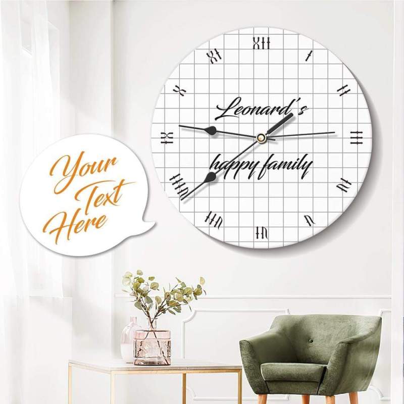 - This custom clock serves as a perfect gift for a new home gift. The high-quality printed wall clock will be an essential decoration of your home, office, or kitchen wall.