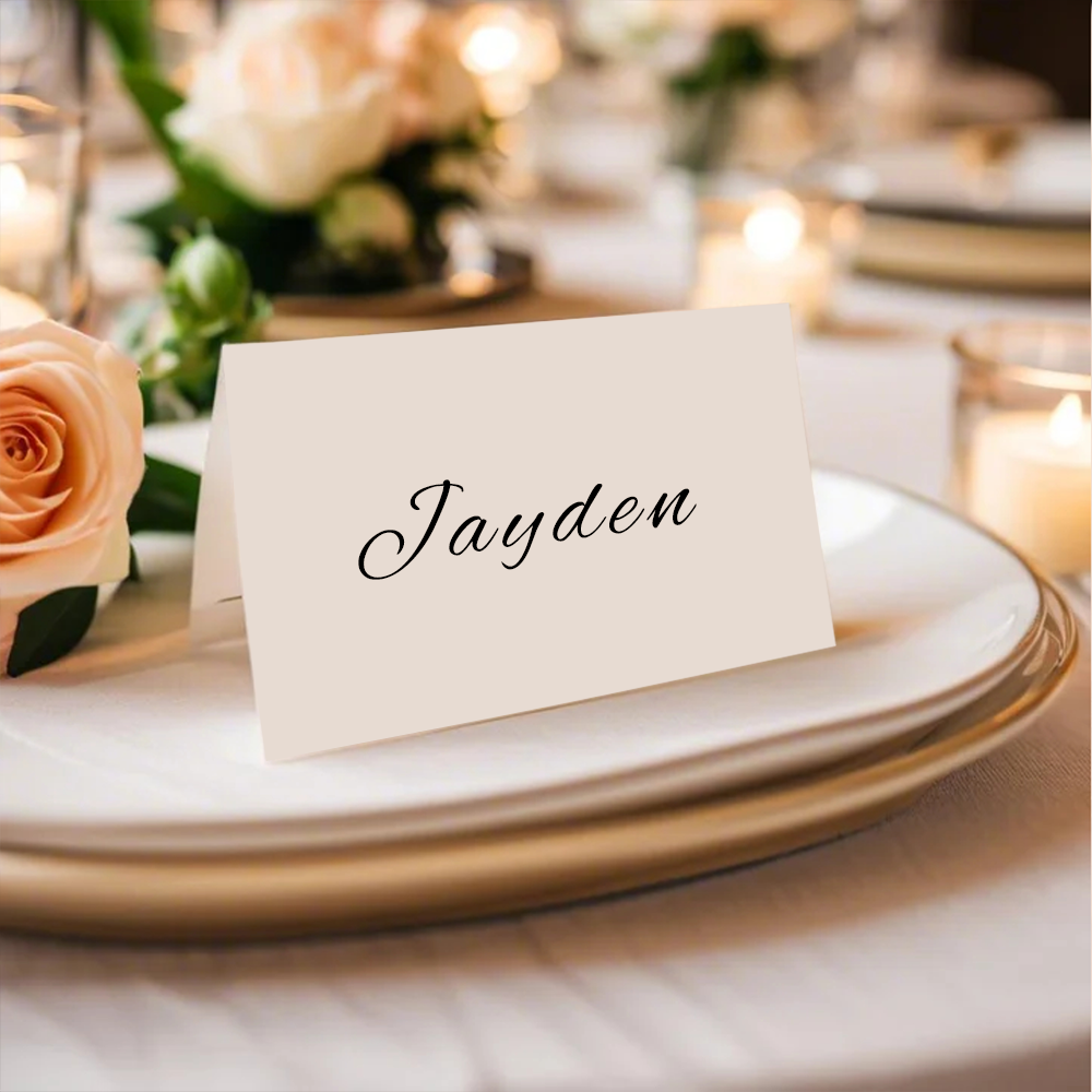 These personalized place name cards are a minimal and elegant addition to any wedding table decor. With each name customized, it adds a personal touch to your special day. Made of high-quality materials, these place cards are durable and long-lasting. Make your guests feel special with these thoughtful details.