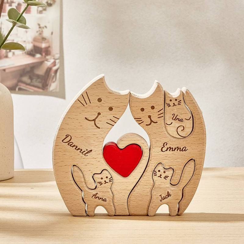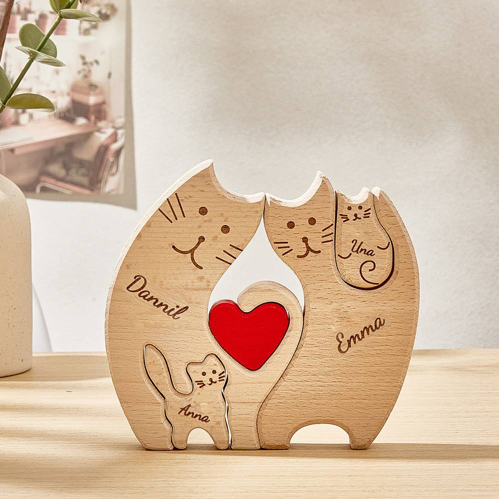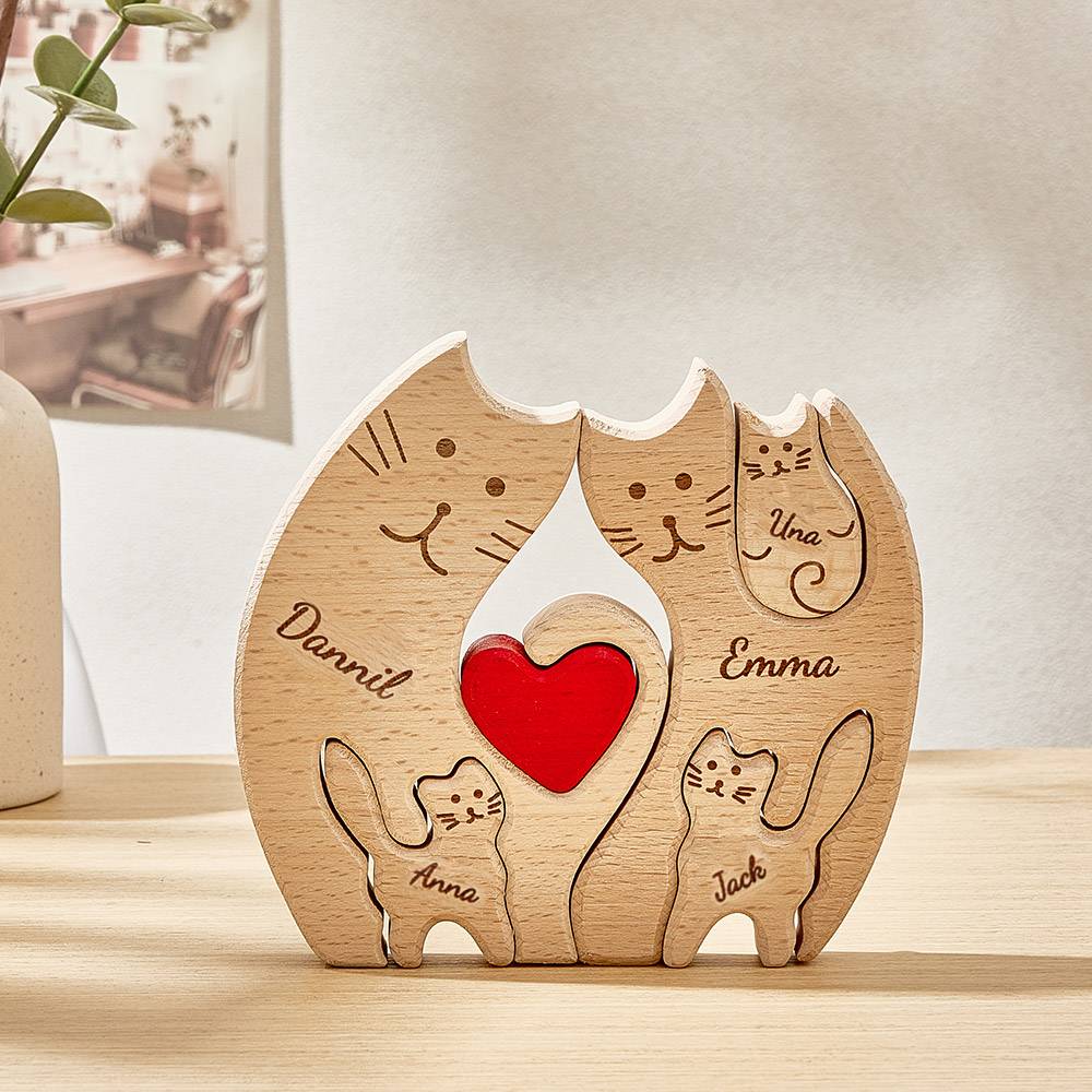 Personalized Wooden Cats Custom Family Member Names Puzzle Home Decor Gifts