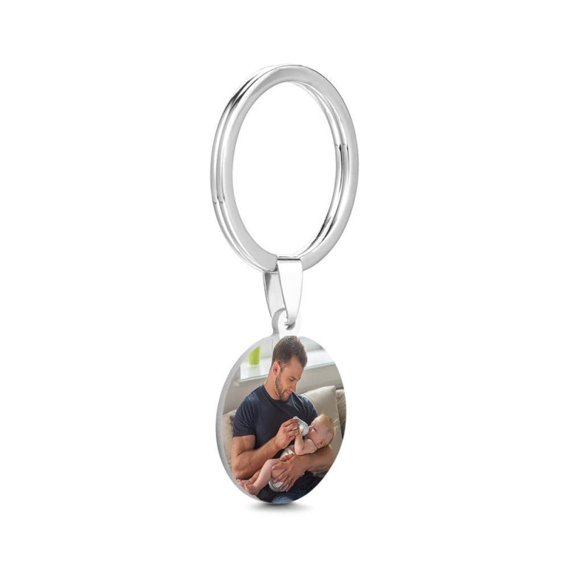 Round Tag Photo Keychain Keepsake Gifts for Daddy Stainless Steel Photo Keychain