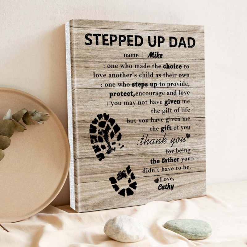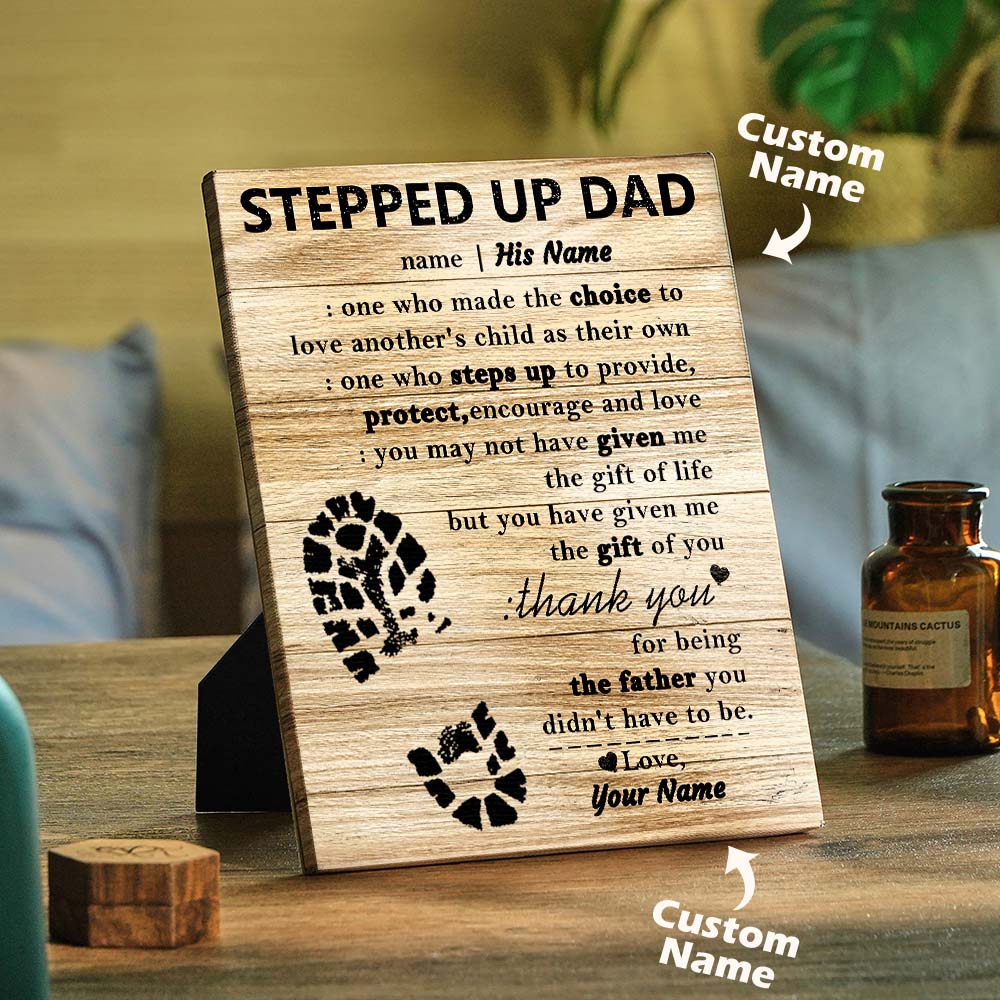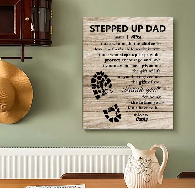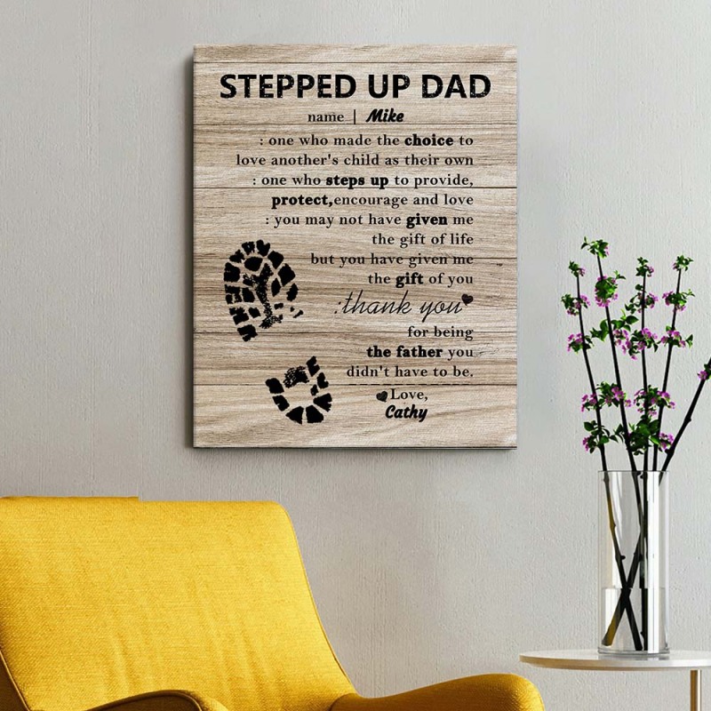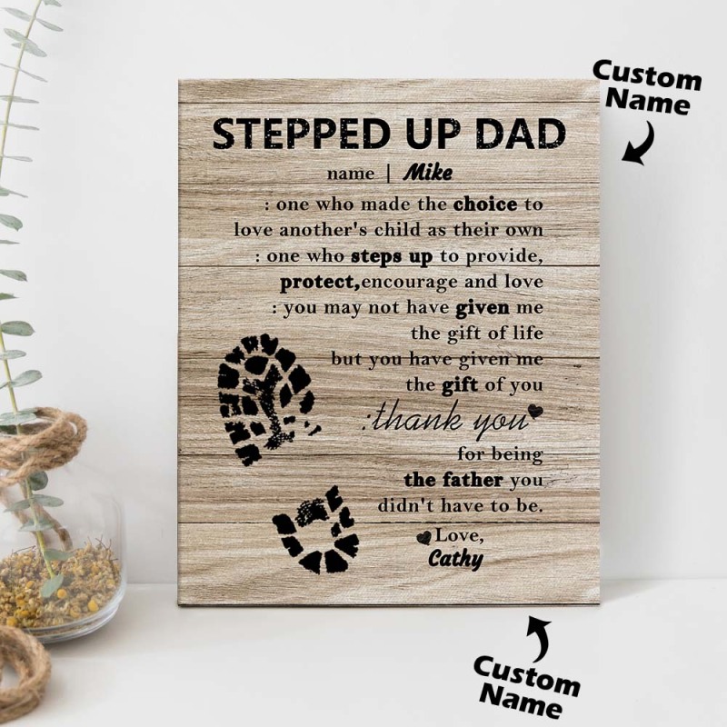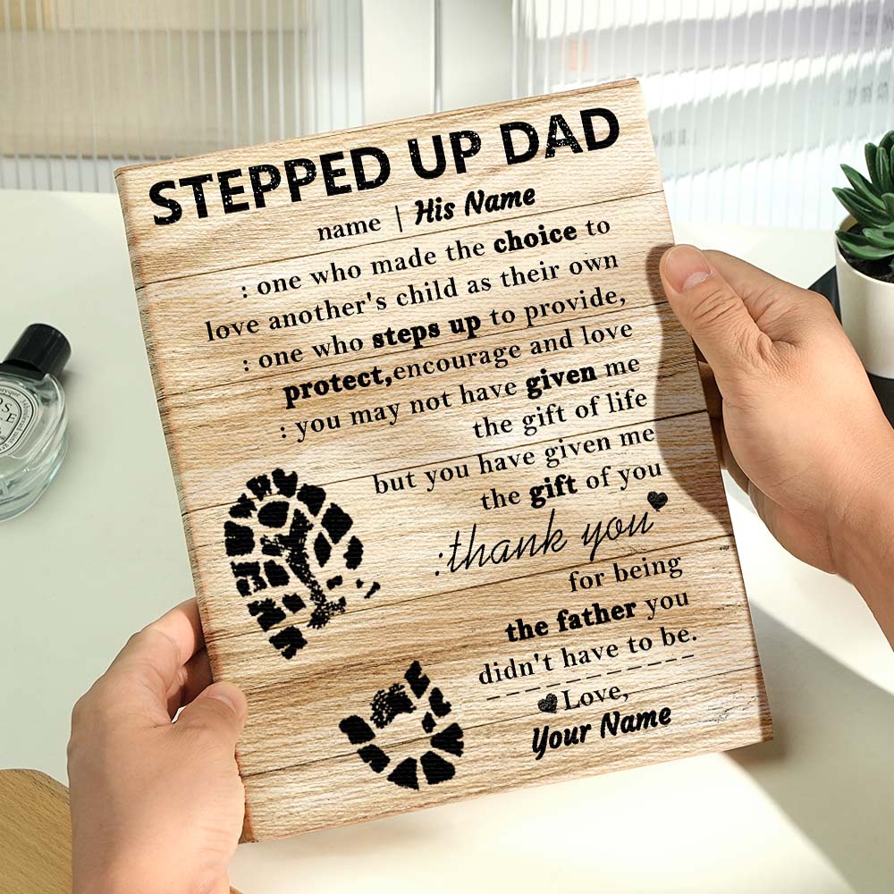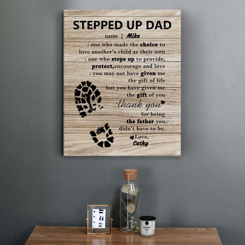Stepped Up Dad Personalized Easel-Back Gallery Wrapped Canvas Poster Creative Frame Father's Day Gifts
