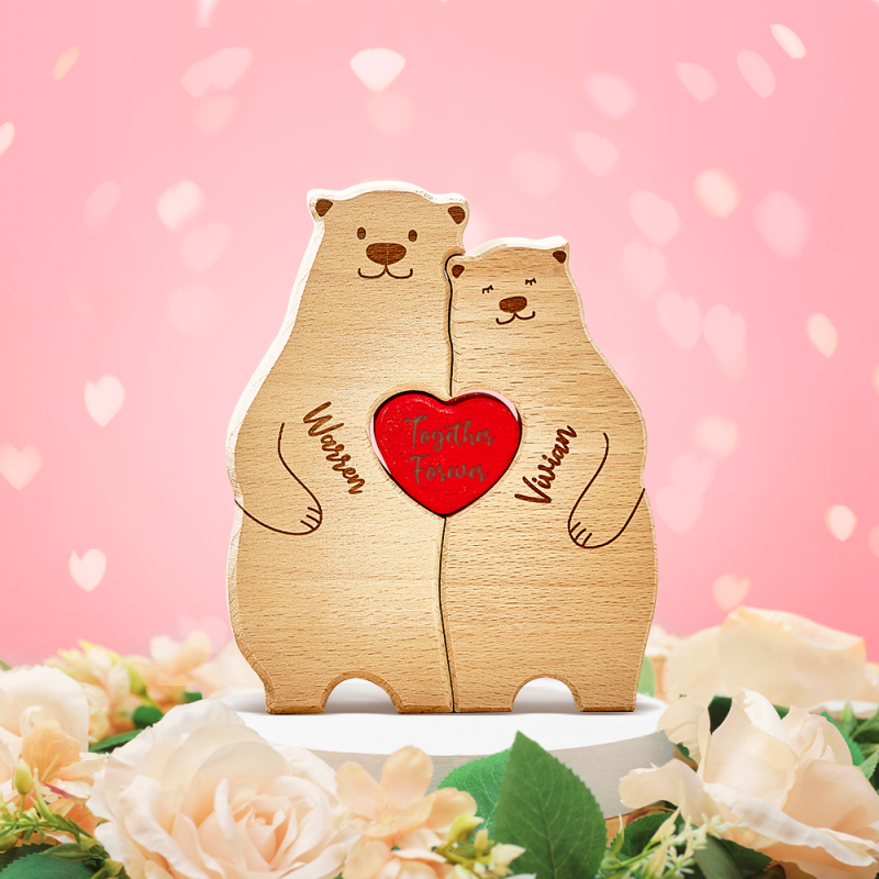 Valentine's Day Gifts Personalized Wooden Bears Custom Family Member Names Puzzle Home Decor Gifts