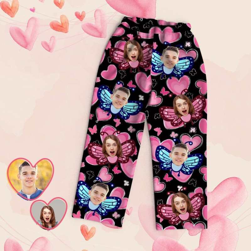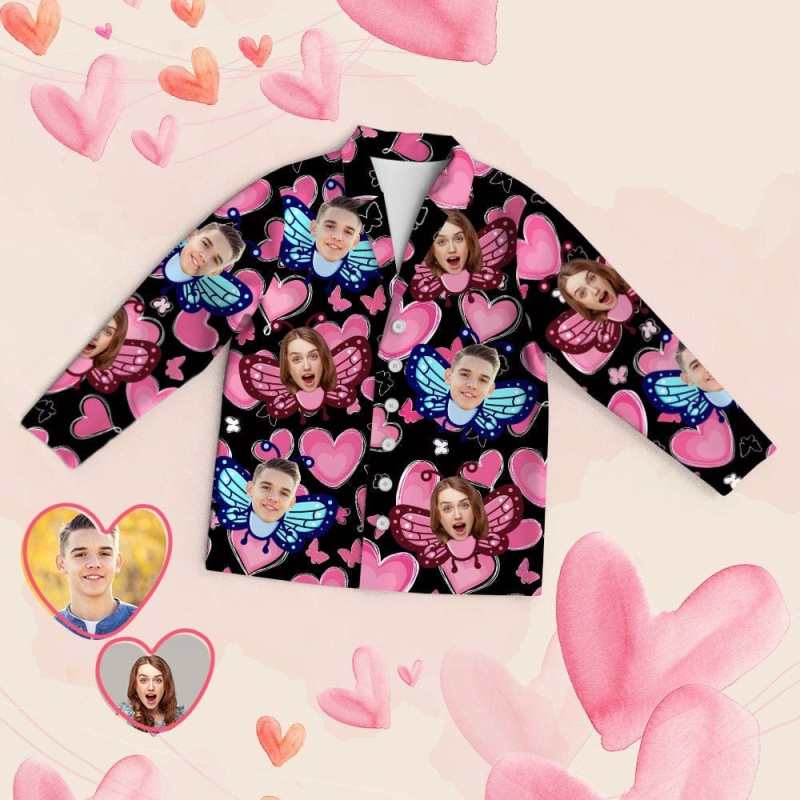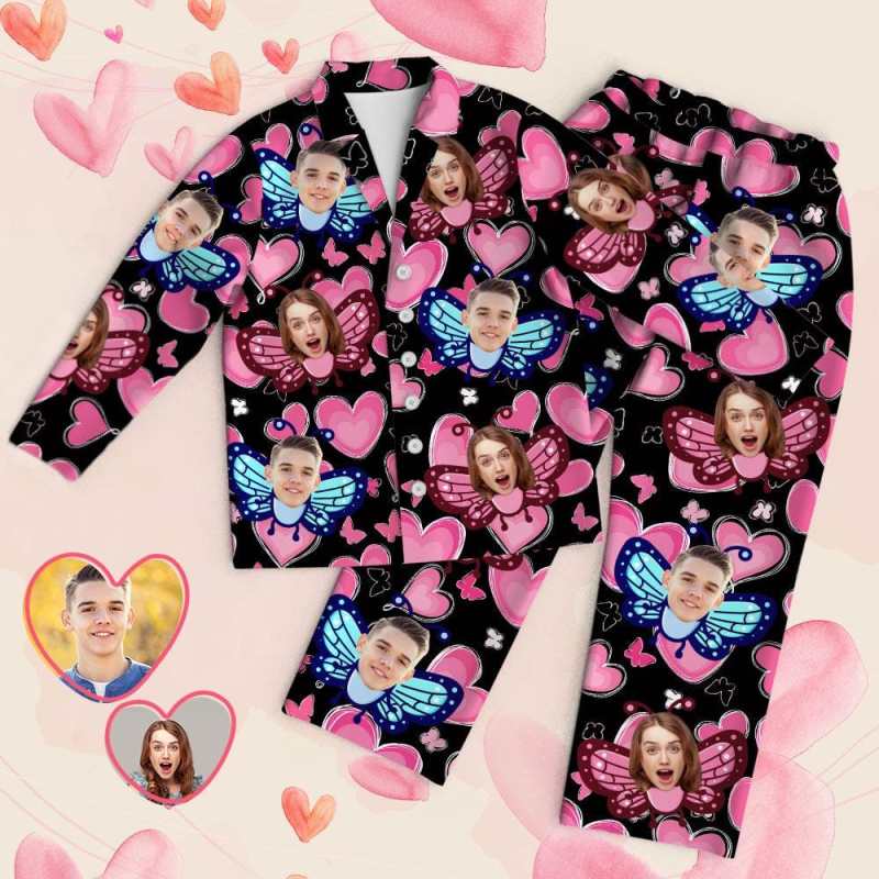 Valentines Pjs Photo Pajamas Gifts for Couple Heart and Butterflies
