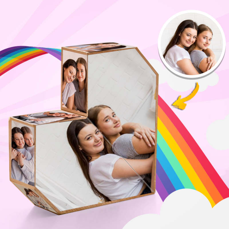 Wooden Cube With Custom Photo Rubic's Cube Gifts for Her Pride Month Gifts